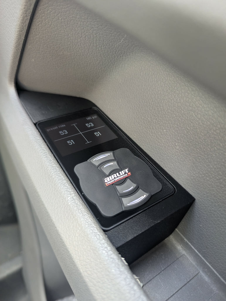 This super cool 3d printed accuair touchpad controller mount, fits into your factory door card pocket.